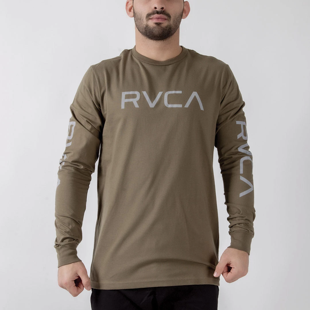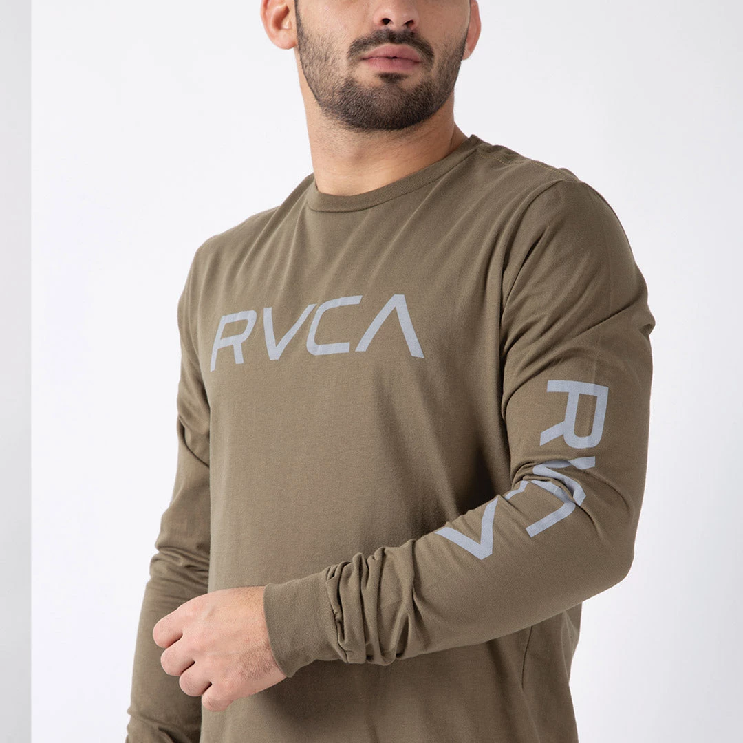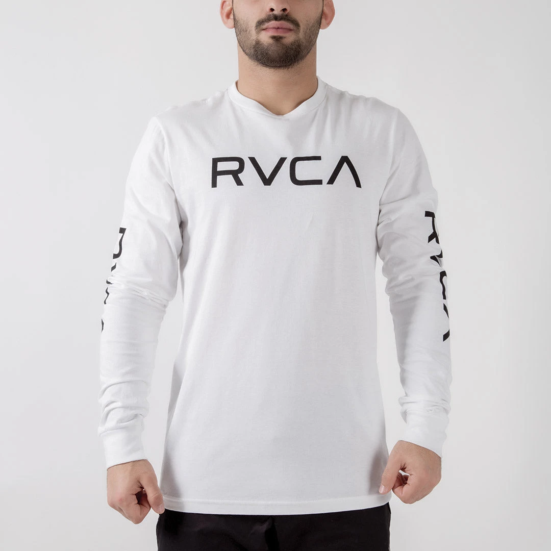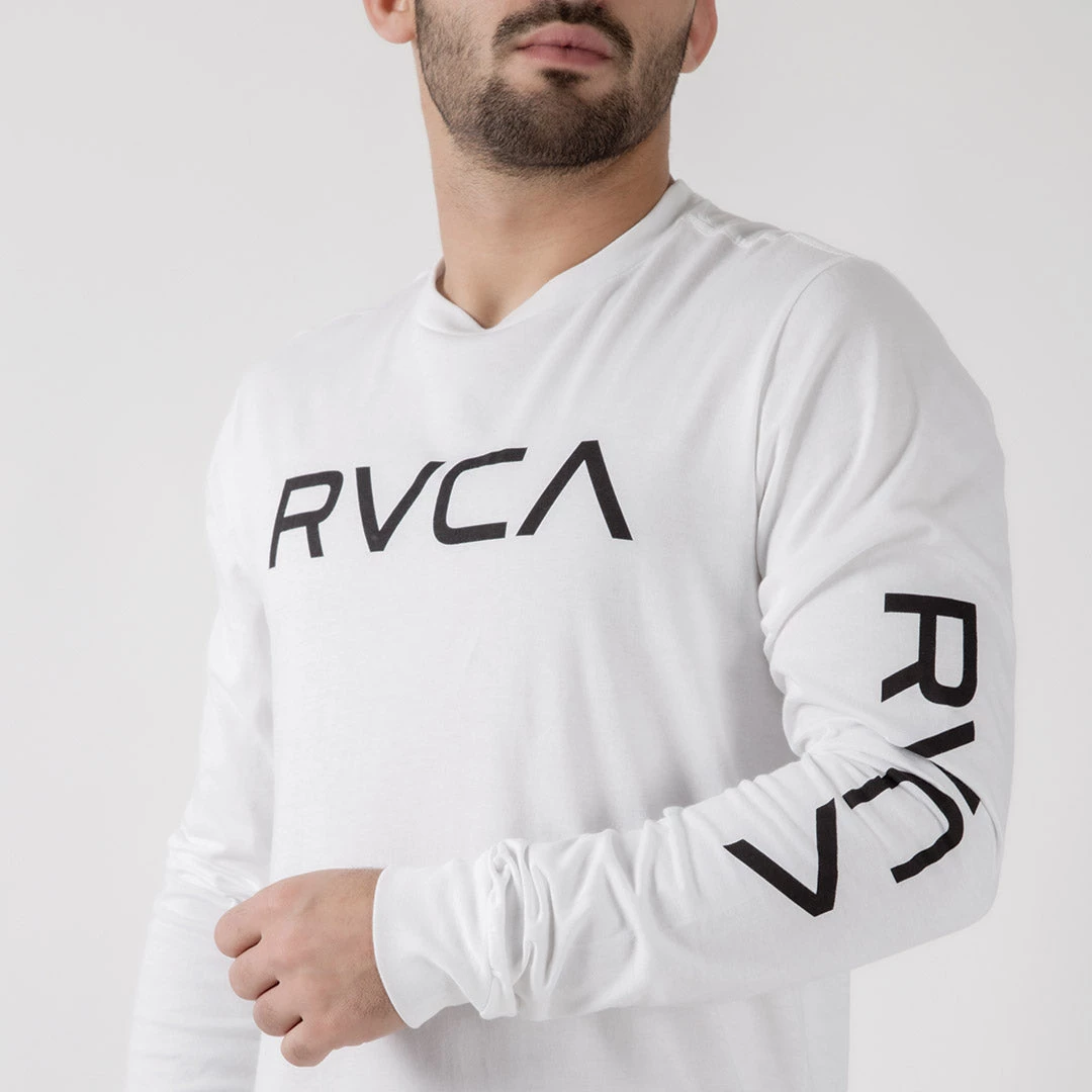 BOLD, CLEAN, AND BASIC, PRESENTING THE BIG RVCA LS TEE. THIS LONG SLEEVE TEE FEATURES A SOFT COMBED COTTON BODY AND SCREENPRINTING ON THE FRONT AND BACK. THE INSIDE NECK LABEL HAS BEEN SCREENPRINTED FOR EXTRA COMFORT.