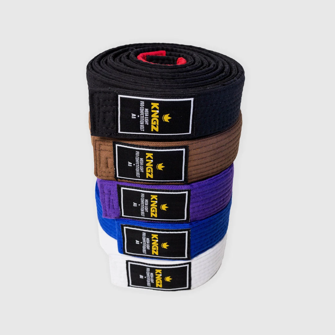 Because sometimes that extra few grams makes a difference on the competition scale, Kingz presents their Mega Light BJJ Belt, one of the lightest in market today, weighing approximately 175 grams!Â