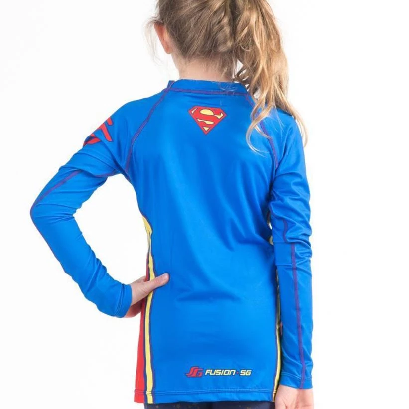 What kid isn’t a fan of one of the greatest superheroes on the planet (and the galaxy)? Fusion Fight Gear presents their iconic Superman Logo rashguard… in kid’s sizes! The perfect mix of protection and cool comic book style, your child will love it!Â