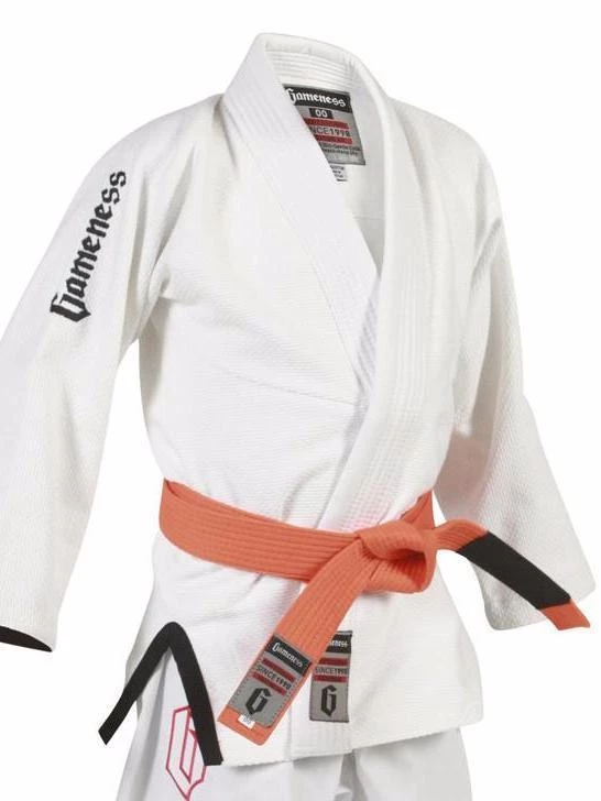 Modeled after Gameness’ popular adult gi, the Gameness Air Kid’s Gi features an ultra-light weight 350 GSM Comb Weave jacket, with reinforcements along all the major stress areas, and a durable ripstop-covered foam lapel. The pants are made from military grade 10 oz cotton-polyester blend ripstop, which makes them lighter and stronger than any other gi pants fabric. Available in sizes 000 to 1.