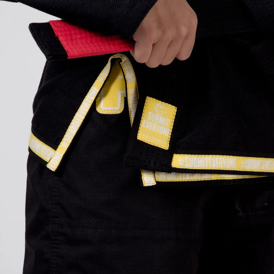 FUJI’s Submit Everyone BJJ Gi is the ideal uniform for both training and competition. Years in the making, this uniform features everything you love about FUJI BJJ gis perfectly crafted into one! The jacket is ultra-lightweight that displays a woven die cut FUJI patch on the collar as well as a ribbon on the bottom of the skirt. On the back shoulder is a large embroidered FUJI emblem. The final touch on the jacket is the inside print which motivates you to SUBMIT EVERYONE!