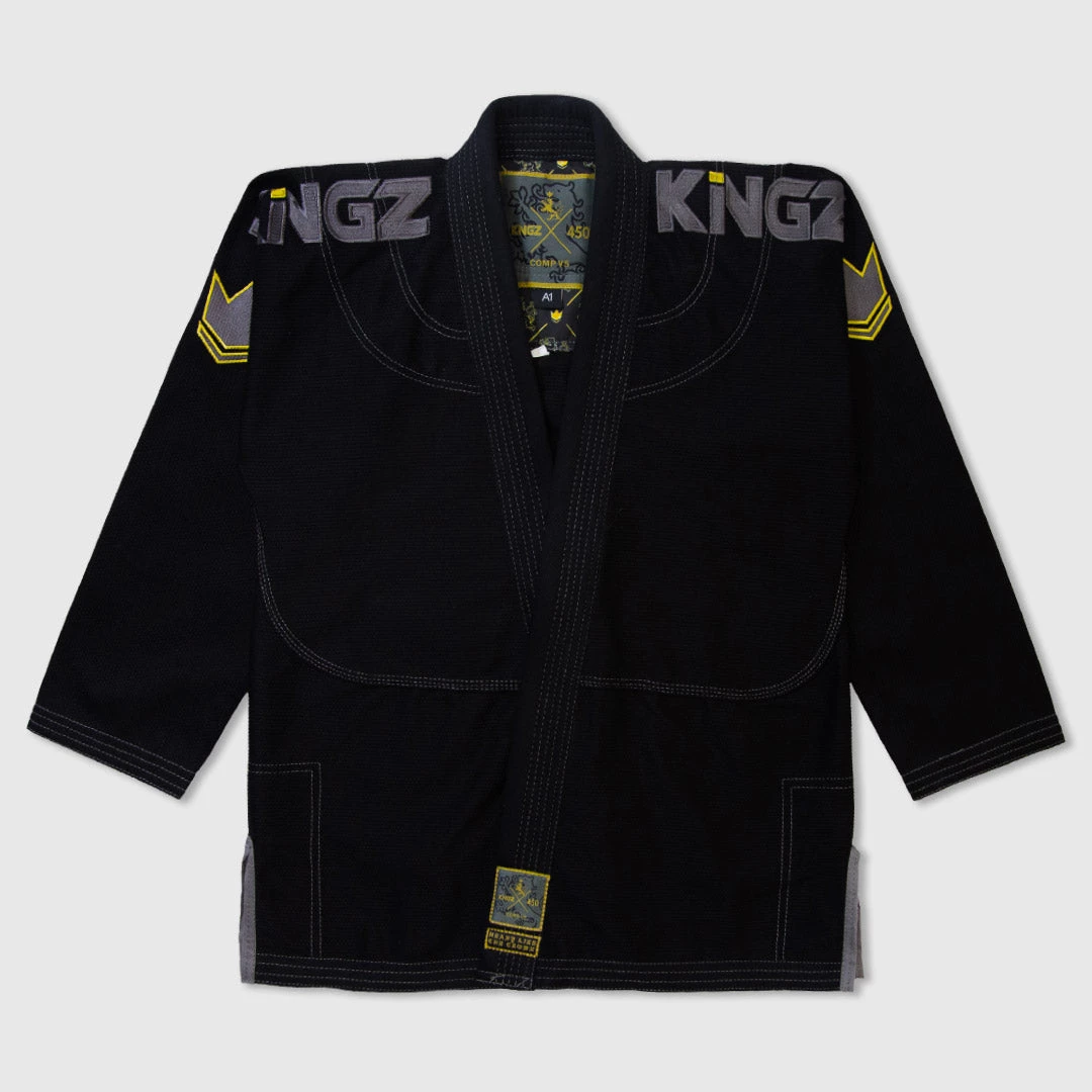 Now in it’s fifth edition, the Kingz Comp 450 V5 kimono is better than ever! Made with the same high quality construction and fabric, the Kingz Comp 450 V5 features a 450 GSM Pearl Weave jacket and 100% 10 oz drill cotton, durable enough for both the daily grind and the tournament setting. Kingz has given their Comp 450 an edgier style, with sharper embroideries and a fresh new patterned shoulder lining and design details.Â