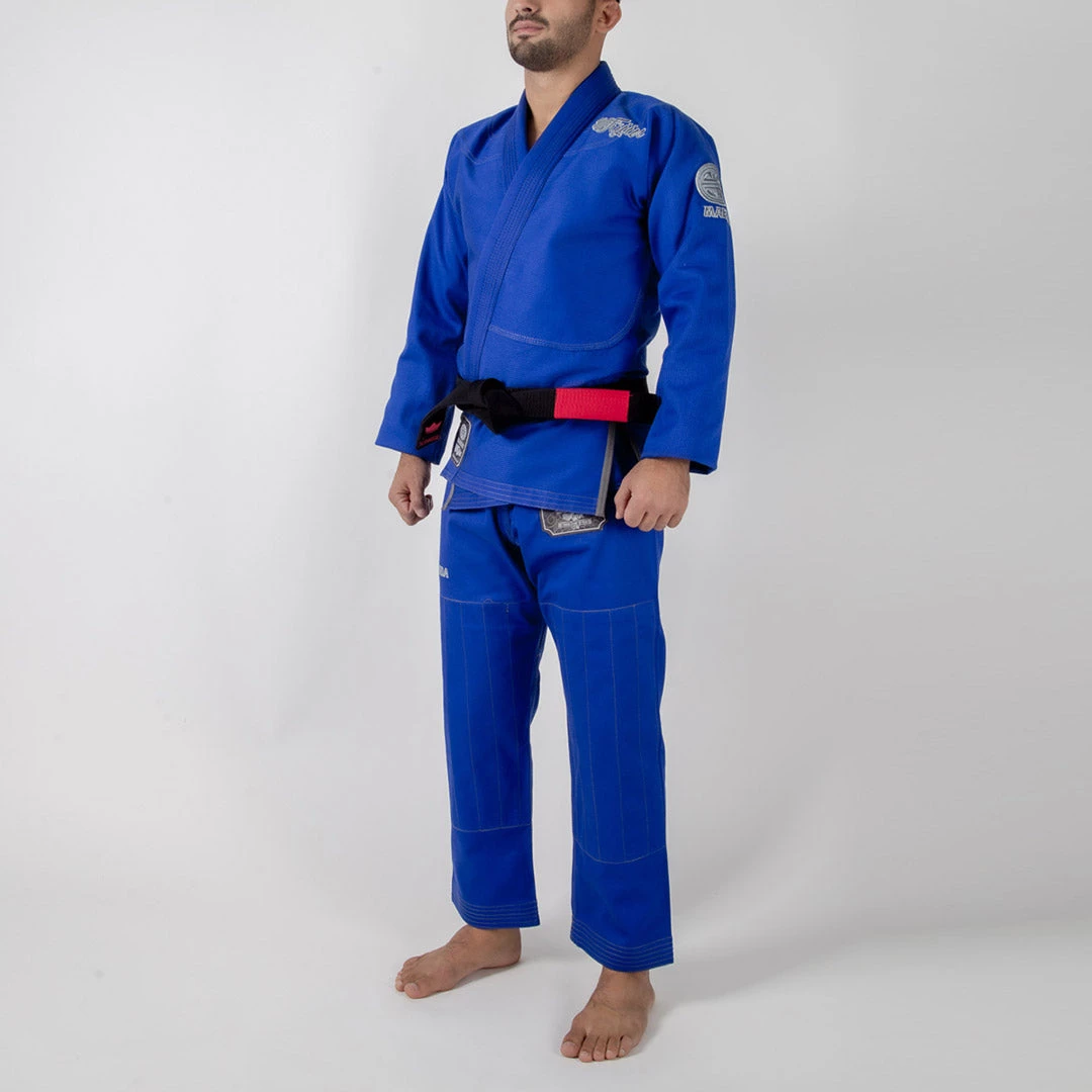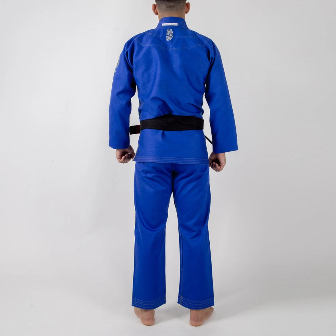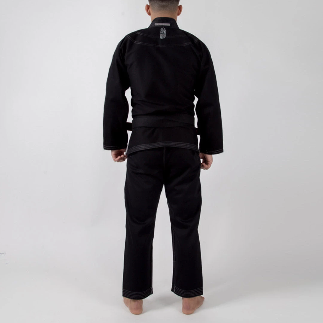 The Fujin (which is the Japanese God of Wind) is an excellent example of Maeda’s dedication to clean, timeless quality, combined with a touch of modern style. Made with an ultra-lightweight 370 GSM Pearl Weave jacket and 8 oz drill cotton pants, the this Maeda jiu jitsu gi is elegantly styled, featuring a silver and forest color scheme, with the Maeda logo embroidered on one shoulder, “Maeda” in Kanji on the other shoulder and back of the jacket, and a stylized “Fujin” across the collar bone. Comes with a matching gi bag.