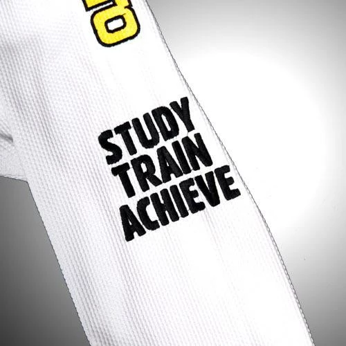 With the same quality as you have come to expect from the adult models, and based on the classic adult Select Gi, the Manto Kid’s Select Gi features a lightweight yet durable Single Weave jacket, with a foam rubber lapel. The pants are made from lightweight cotton, with a drawstring waist. Minimally adorned, it features high quality embroideries, including the text “Study Train Achieve” on the left arm, the the iconic Manto grapplers logo on the right arm, and a strangely cool little grappler with MMA gloves on the skirt of the jacket.