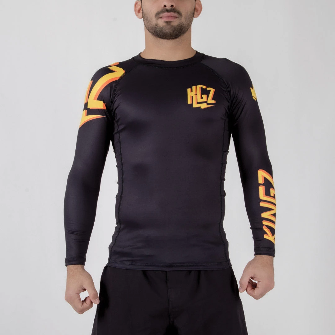 Kingz designed the KGZ Rashguard- Orange Edition to withstand any challenge the No- Gi grappler faces on the mats.
