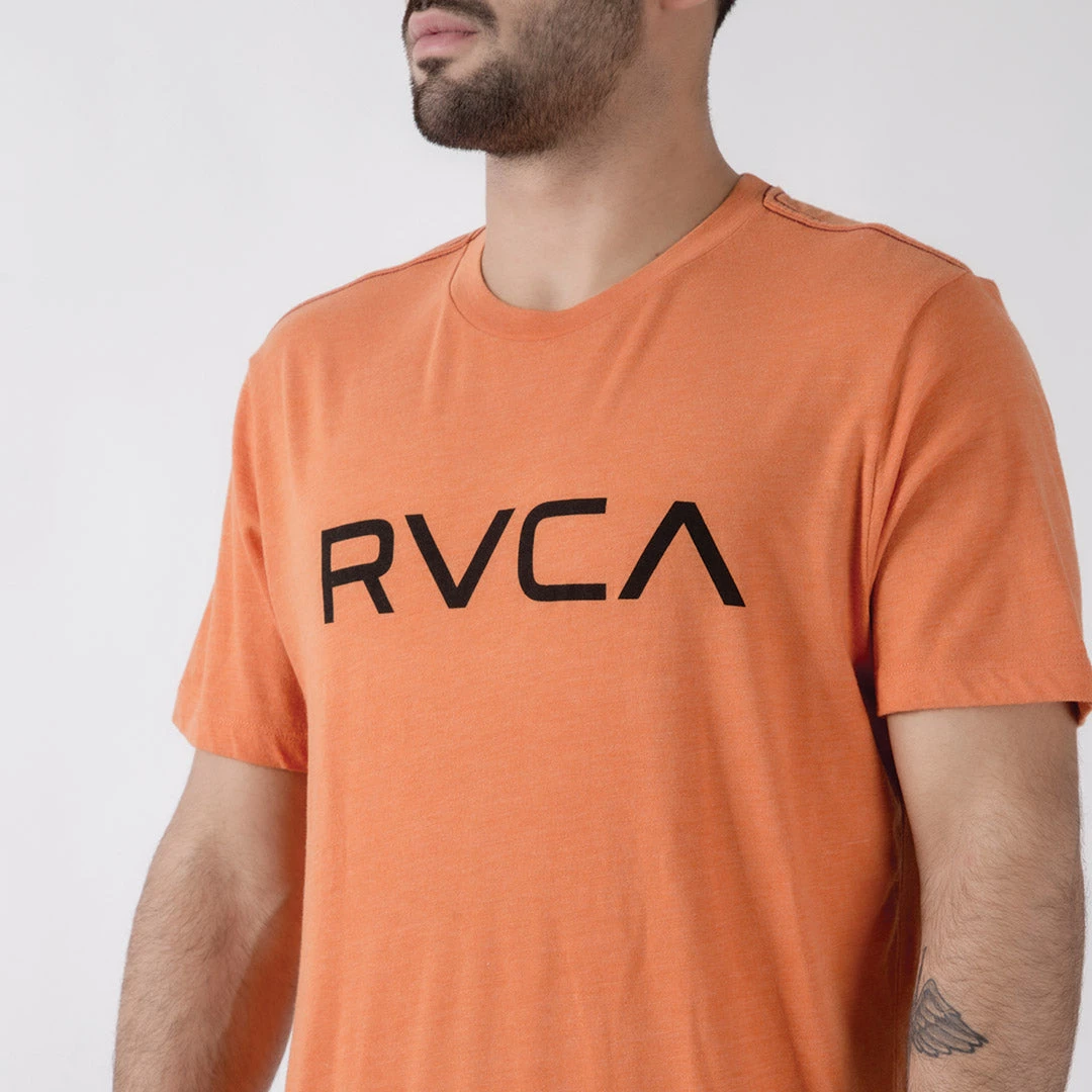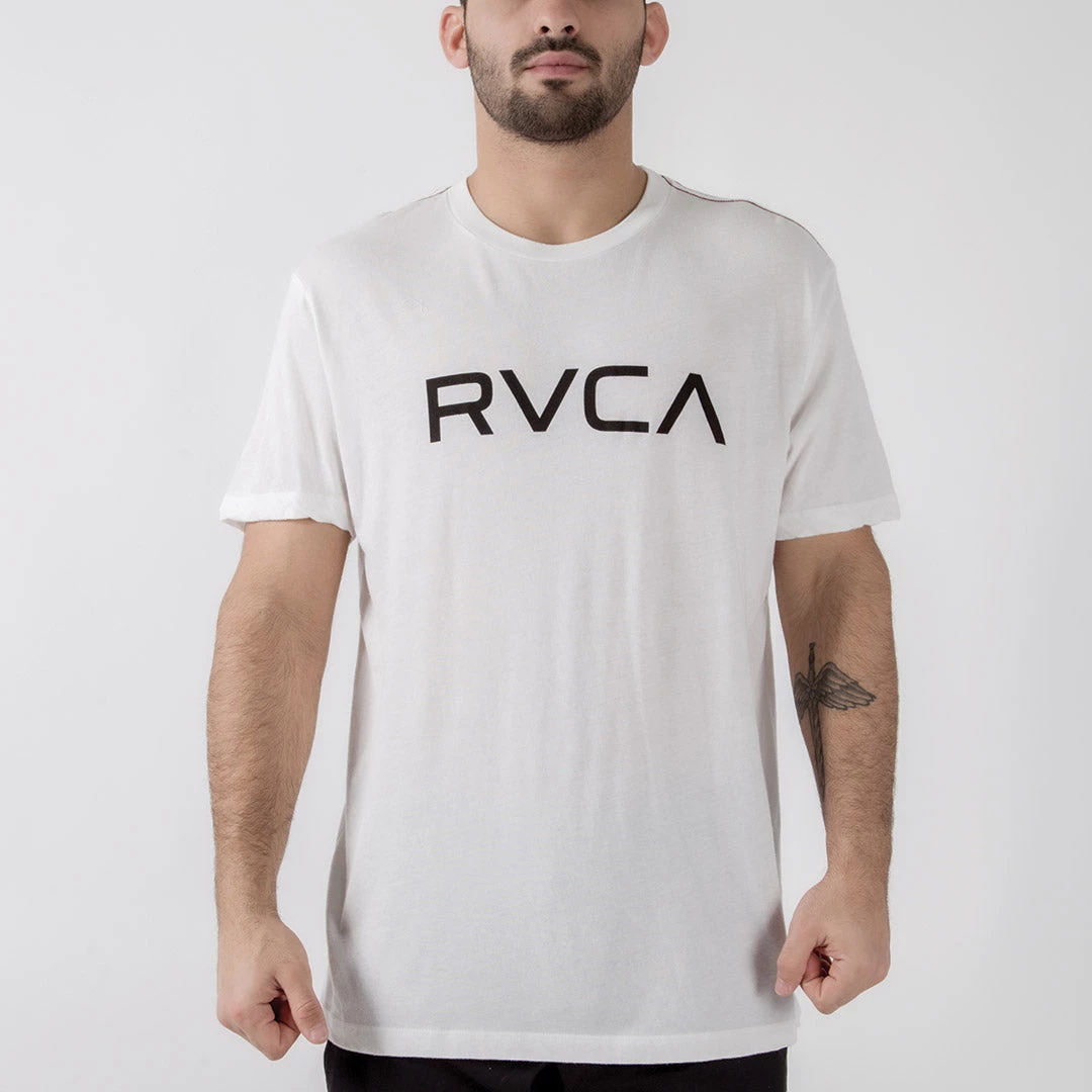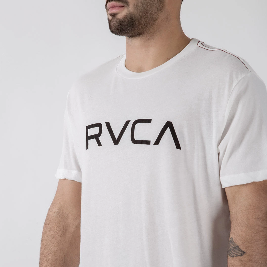 REPPING RVCA AND THE ICONIC VINTAGE TEE, THE BIG RVCA T-SHIRT FEATURES RVCA’S TRADEMARK RED STITCH AT THE SHOULDERS AND A LOGO PRINT AT THE CHEST. MADE FROM PREMIUM JERSEY WITH A SOFT FEEL, THE MENS GRAPHIC SHORT SLEEVE FEATURES A MODERN SLIM FIT, CUSTOMIZED WITH A PRINT AT THE CHEST.