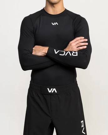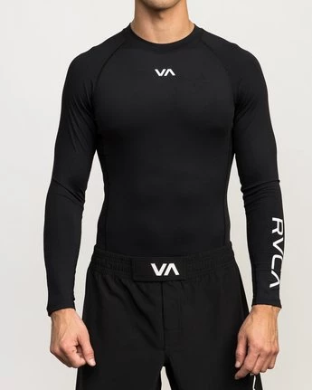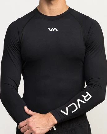 THE RVCA VA PERFORMANCE LONG SLEEVE SHIRT IS DESIGNED TO LET YOU TRAIN HARDER AND RECOVER FASTER. A TRAINING STAPLE, THE PERFORMANCE LONG SLEEVE TOP FEATURES LIGHT COMPRESSION TECHNOLOGY AND 4-WAY STRETCH FABRIC WITH MOISTURE-WICKING AND ANTI-MICROBIAL PROPERTIES. DETAILS INCLUDE SIDE PANELS, RVCA AND VA PRINTS, RAGLAN SLEEVES AND PRINTED NECK TAPE.