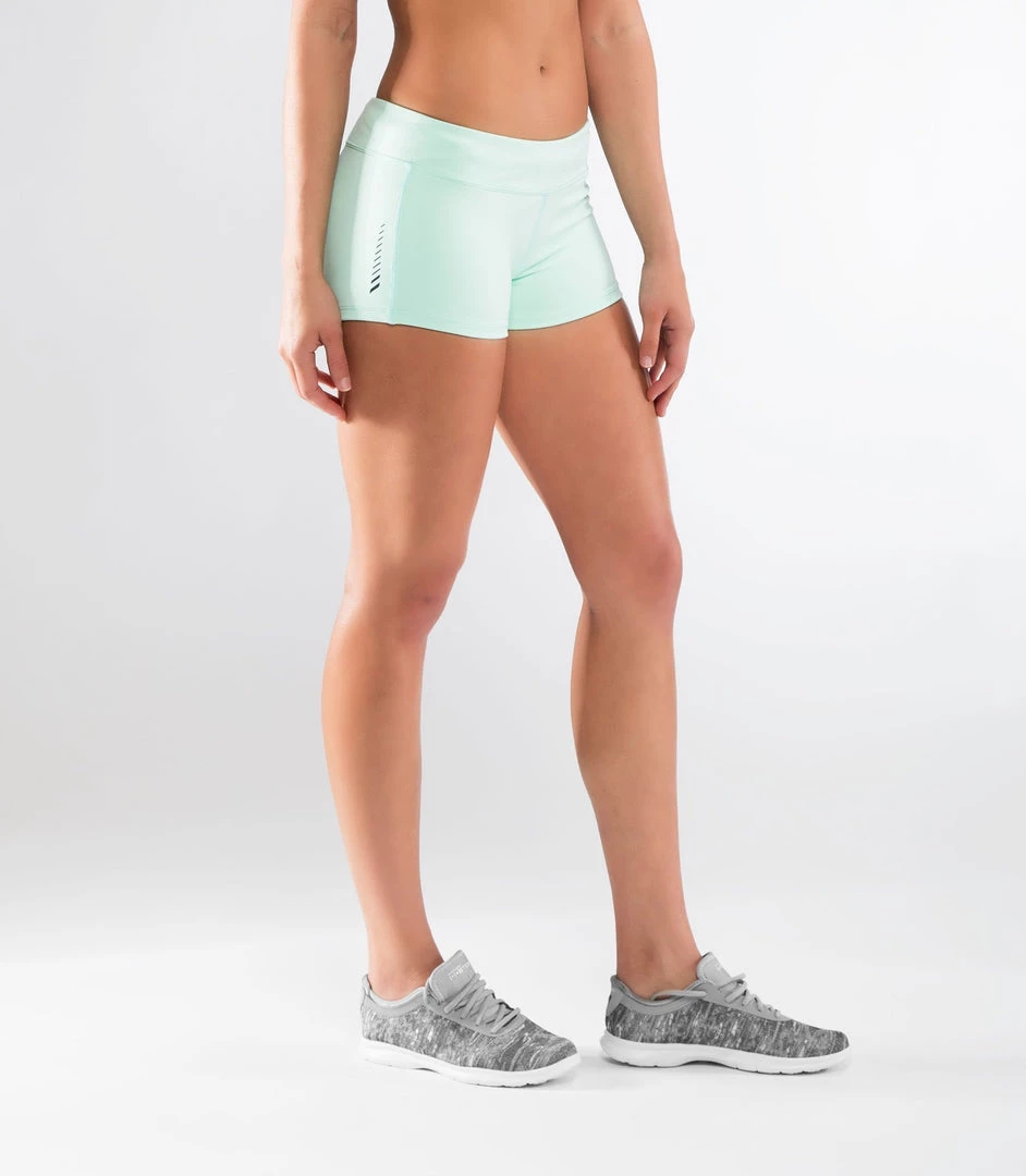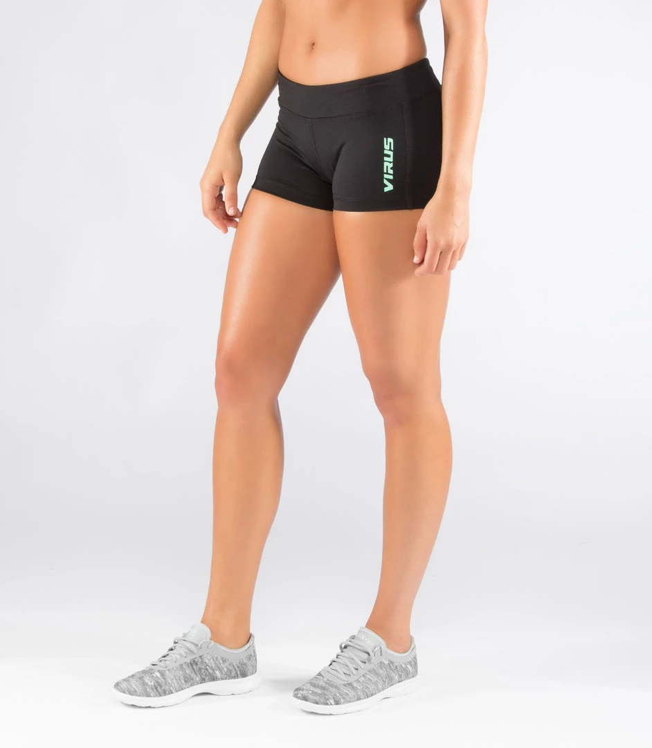 You’ve come to the right place. The Virus Women’s DATA Training Shorts have been engineered for the rigors of functional fitness, and designed to for the female athlete’s body. Light weight, with a comfy fit and a 2-inch low waist band, the DATA training shorts was designed to stay put through the full range of training movements, from squats to sprints. Flattering fit with Cool Jade material, and mint detailing.